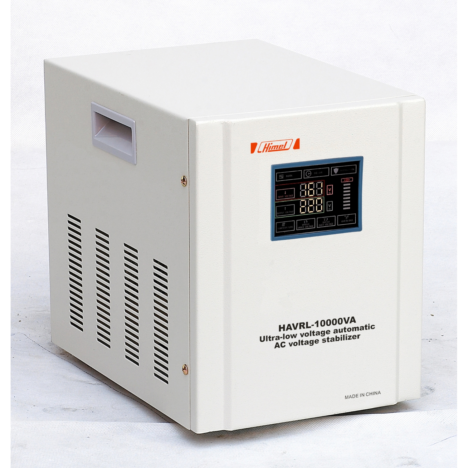 [vc_row][vc_column][vc_column_text]Voltage stabilizer, HAVRL, relay type, 10 kVA, British type plug, 110/220 V output, 85..250 V input, with time delay